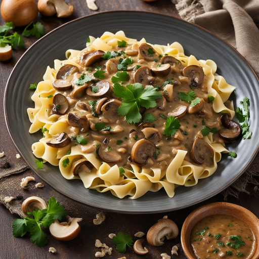 6. 6. Sirve sobre fideos de huevo cocidos o arroz, decora con perejil fresco.