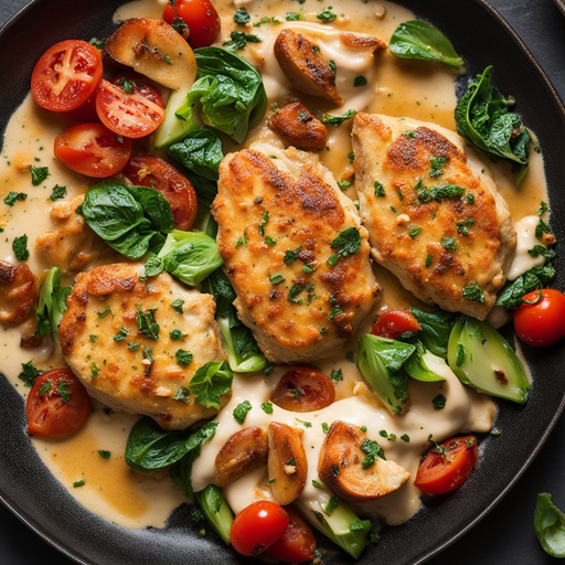6. Vierte la salsa cremosa sobre el pollo y las verduras.