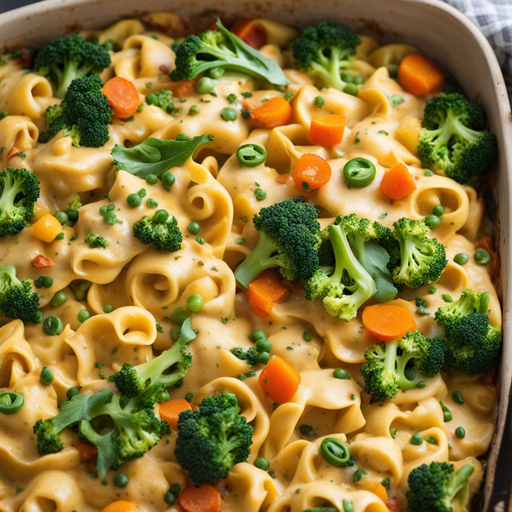 A delicious and creamy vegetable tortellini bake with a hint of spice and sweetness