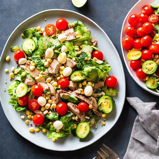 Una ensalada fresca y saludable repleta de pavo y una variedad de verduras