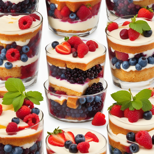 Un delicioso trifle hecho con capas de jugosas bayas, bizcocho y leche cremosa
