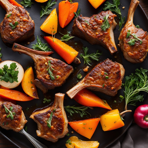 Jugosas chuletas de cordero con un toque frutal dulce y salado, servidas con verduras asadas