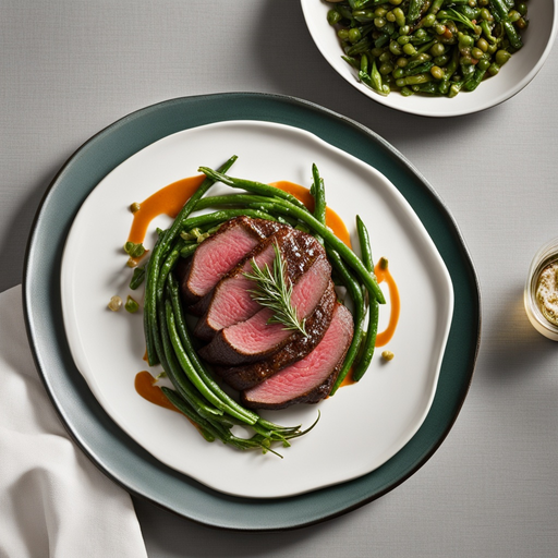 Un plato delicioso y elegante que presenta tiernos filetes de solomillo de ternera servidos con sabrosos haricots verts y cremosa crema agria.