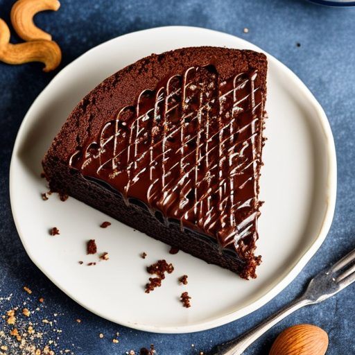 Un delicioso y húmedo pastel de chocolate hecho con leche de almendras y cubierto con nueces de anacardo.