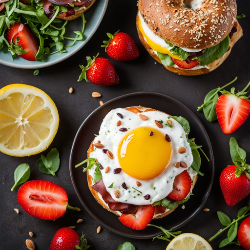 10. 10. Cierra los sándwiches con las mitades restantes de los bagels y sírvelos con un lado de yogur vainilla bajo en grasa mezclado con almendras picadas y ralladura de limón fresco.