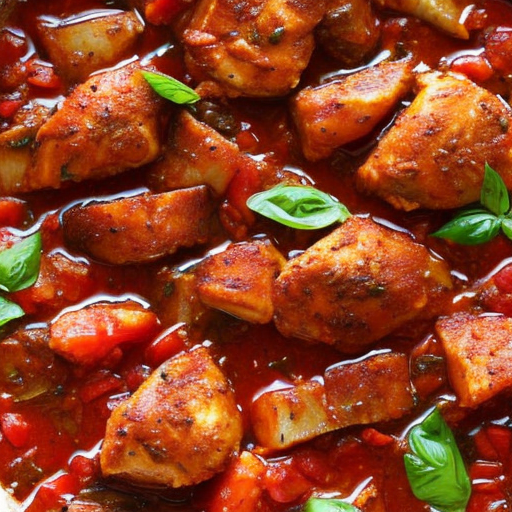 Un délicieux plat avec du poulet juteux et des tomates savoureuses.