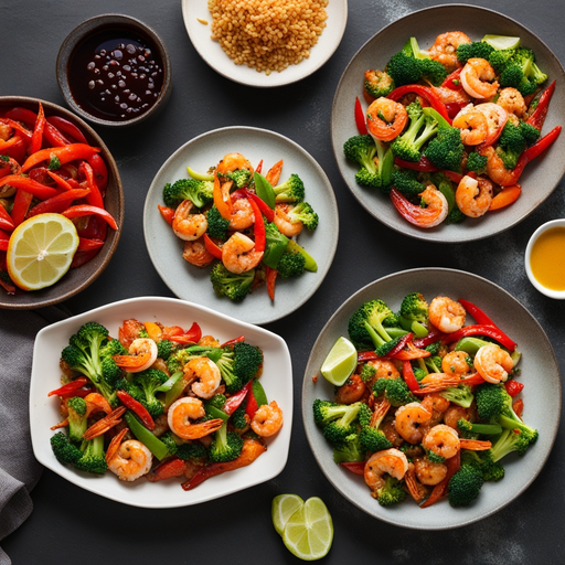 A flavorful and spicy stir-fry dish with succulent shrimp and fresh vegetables
