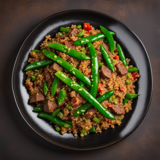 A flavorful and nutritious stir-fry dish with quinoa, ground beef, and green beans