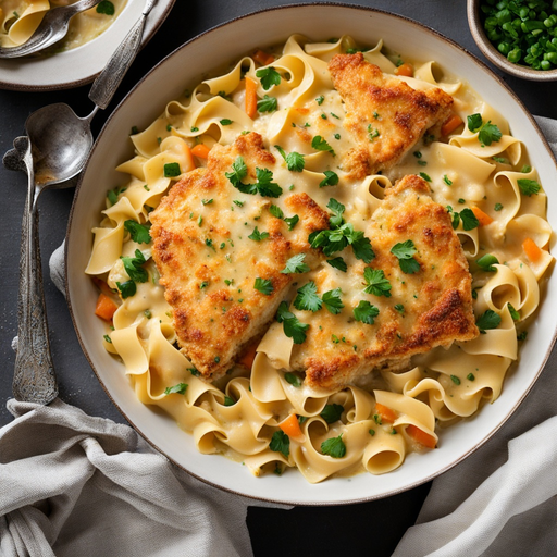 6. 6. Versez le mélange crémeux sur le poulet et les nouilles.