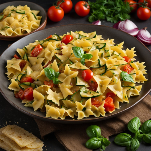 Un plat de pâtes délicieux et copieux chargé de légumes et de saveurs.