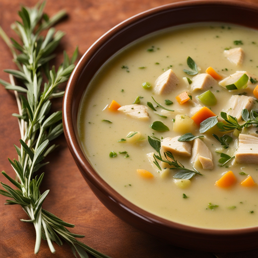 Une soupe réconfortante et aromatique préparée avec du bouillon de poulet et un mélange d'herbes.