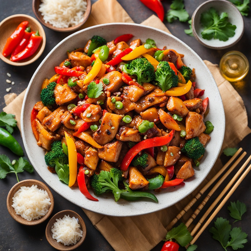 Un plat de sauté de poulet délicieux et savoureux avec du poulet tendre et un soupçon d'épices