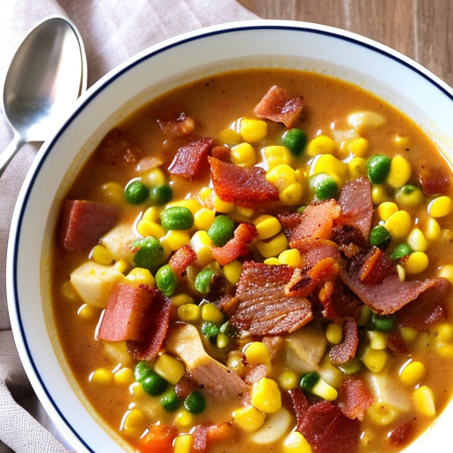 Une soupe copieuse et crémeuse remplie d'une variété de viandes et de légumes.