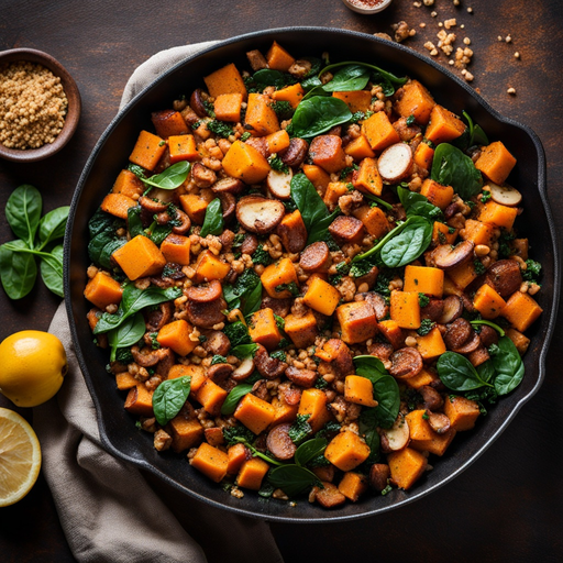 A hearty and flavorful breakfast hash with sweet potatoes, turkey sausage, and veggies.