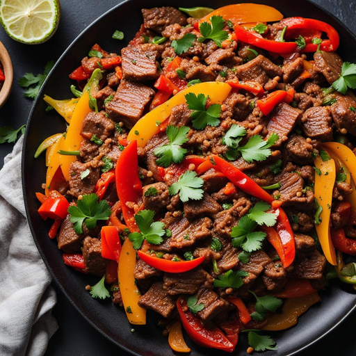 A spicy and flavorful stir-fry with ground beef and colorful bell peppers