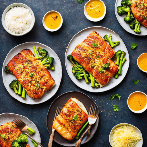 Un délicieux plat de fromage mettant en vedette du kielbasa, des asperges, du poivron, du brocoli et du fromage cheddar râpé.