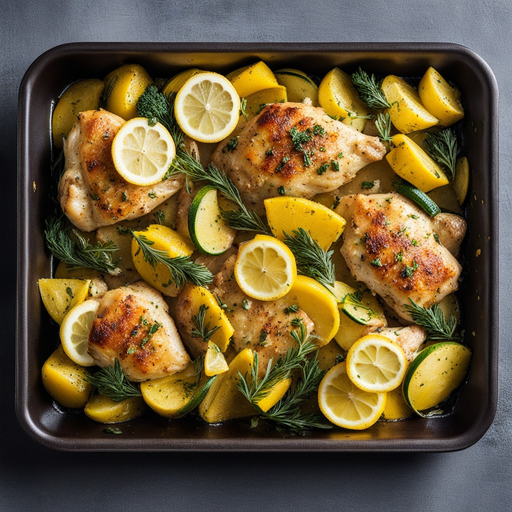Un délicieux plat facile à préparer avec du poulet tendre et des légumes frais, cuit au four à la perfection avec une saveur citronnée zestée.