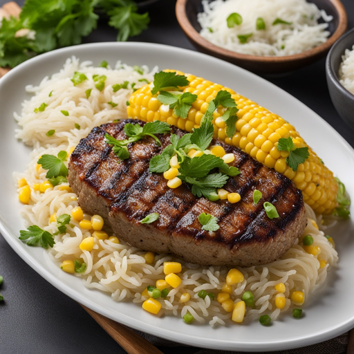 A delicious and comforting meal featuring herb-seasoned hamburger served with jasmine rice mixed with noodles, sweet corn, and a touch of 2% low-fat milk.