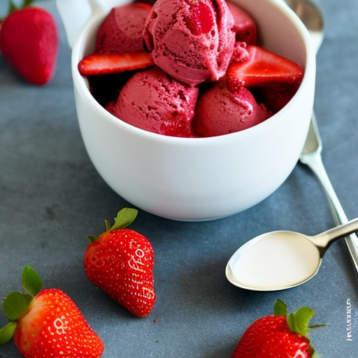 Indulge in this creamy and fruity strawberry ice cream made with fresh strawberries, milk, and a hint of strawberry jam.