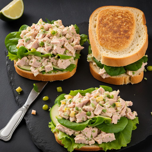 3. 3. Divide the tuna salad mixture between the two slices of bread.
