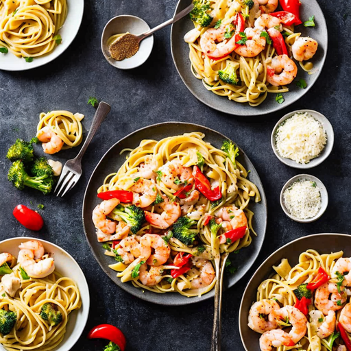 Indulge in a creamy and flavorful pasta dish with chicken, shrimp, and garlic in a rich cream sauce.