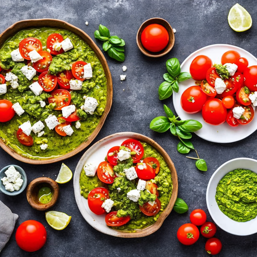 Um delicioso e fácil acompanhamento que combina os sabores de pesto, queijo feta e molho de tomate.