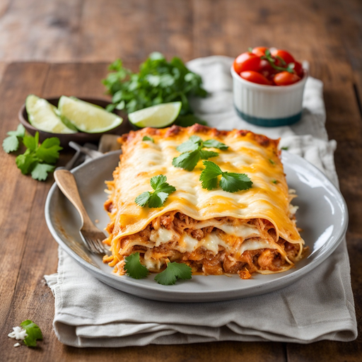 Uma deliciosa variação das tradicionais enchiladas, esta Lasanha de Enchilada de Frango com Queijo combina os sabores das enchiladas com as camadas reconfortantes da lasanha.