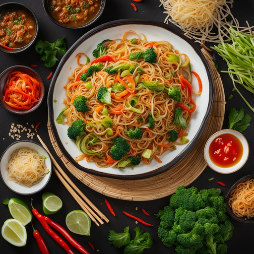 Um prato chinês delicioso e saboroso que apresenta macarrão frito crocante com uma mistura de vegetais frescos