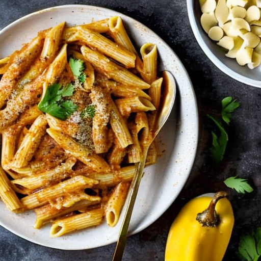 Um prato de massa cremoso e saboroso com um toque de pimenta banana