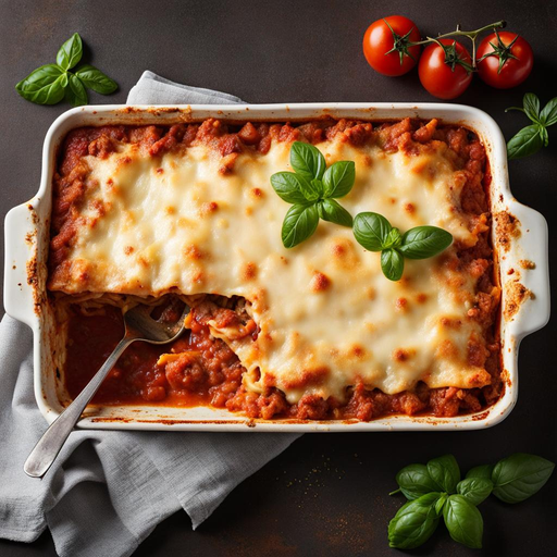 Um prato italiano clássico com camadas de massa, molho de carne rico e queijo cremoso
