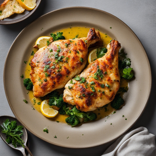Um prato de frango delicioso e saboroso cozido à perfeição em um molho de manteiga de alho.
