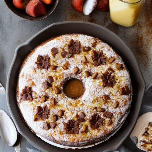 Um delicioso bolo de chocolate com bananas e creme de coco.