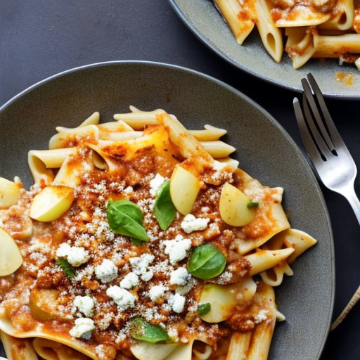 Um prato de massa cremoso e tangy feito com iogurte natural e queijo azul.