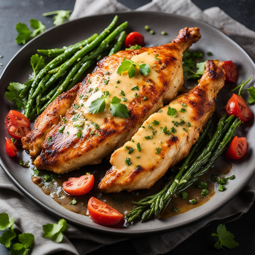 Um prato de frango delicioso e saboroso, cozido na perfeição e servido com um rico molho de manteiga de alho.