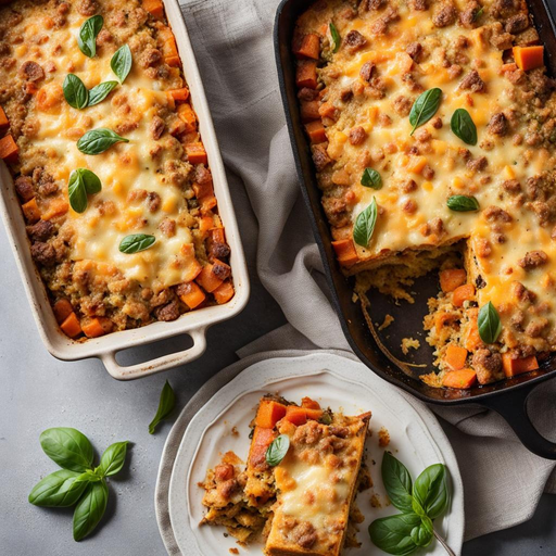 Um cuscuz de café da manhã delicioso e reconfortante feito com batata doce, linguiça e queijo.
