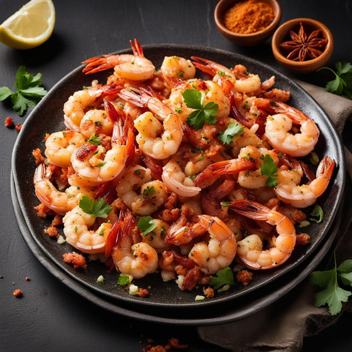 Um prato saboroso e indulgente que apresenta camarões suculentos cozidos em manteiga com infusão de alho e bacon crocante