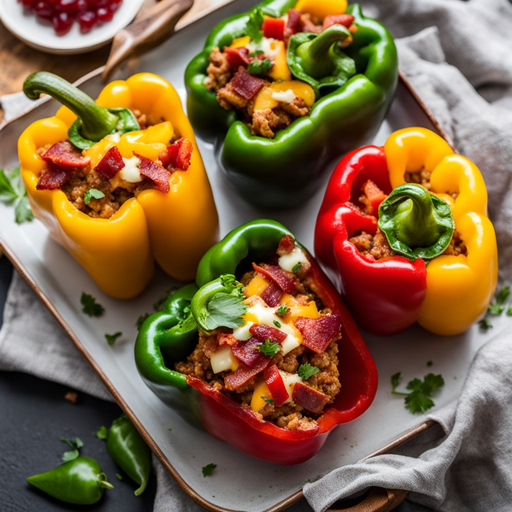 Deliciosos pimentões recheados com peru moído, bacon e queijo.