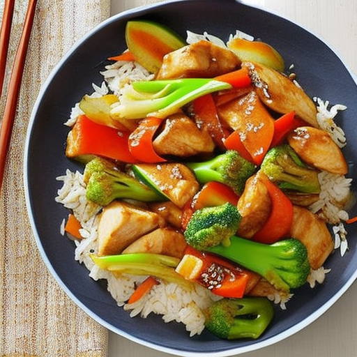 Uma deliciosa receita de frango salteado com legumes e arroz.