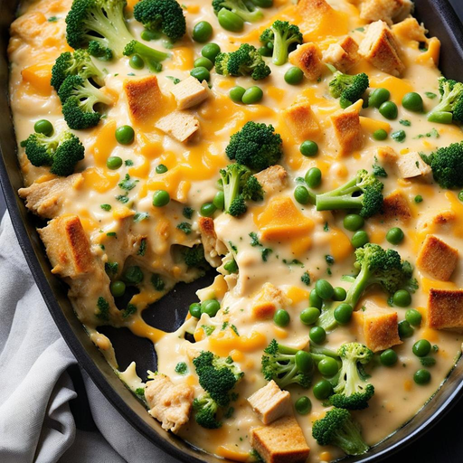 Um casserole delicioso e cremoso feito com frango desfiado de rotisserie, vegetais e um molho de queijo rico.