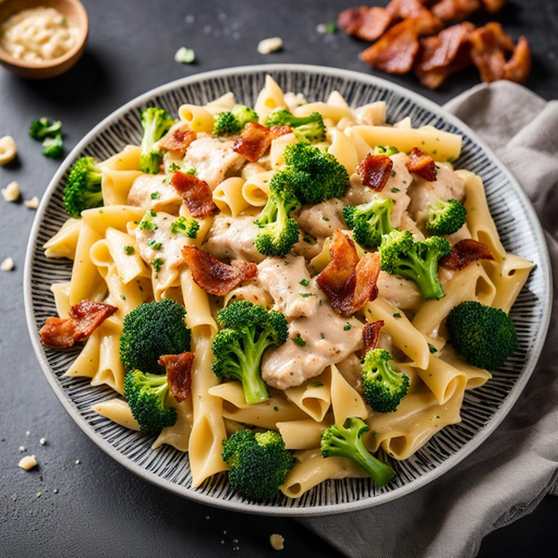 Delicie-se com um prato de massa de frango alfredo cremoso e saboroso que satisfará seus desejos!