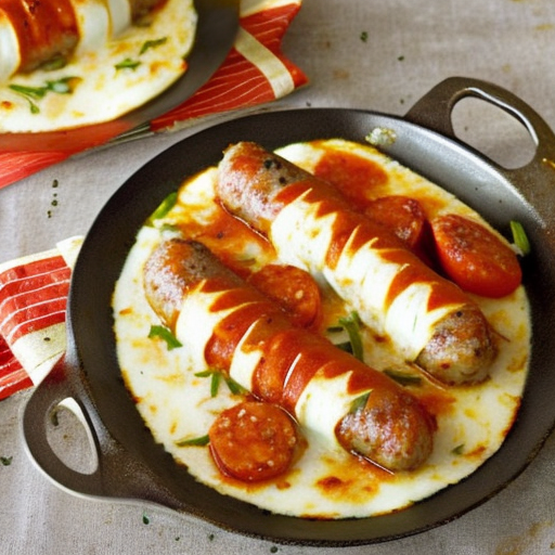 4. Coloque as fatias de mozarela sobre as salsichas de porco fritas.
