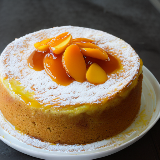 Um delicioso bolo com damascos, manga e uma crosta saborosa feita com farinha de trigo, açúcar mascavo e xarope de bordo.