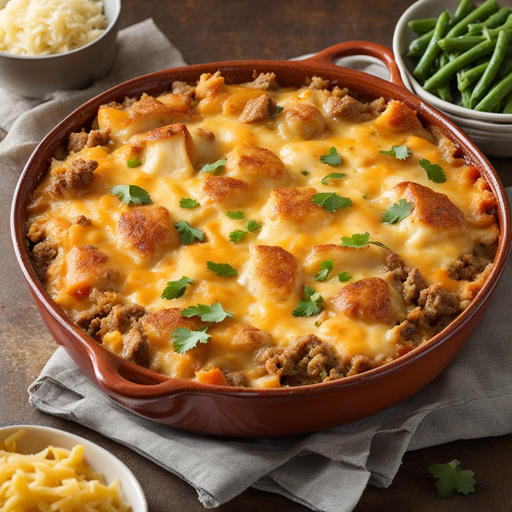Um prato reconfortante com camadas de frango macio, carne e muita queijos.