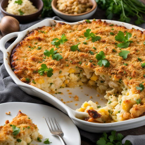 Um delicioso e crocante casserole assado com frango, couve-flor e uma mistura de ingredientes saborosos