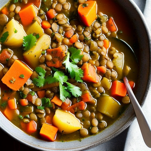 Uma sopa robusta e nutritiva repleta de lentilhas marrons, cenouras e batatas