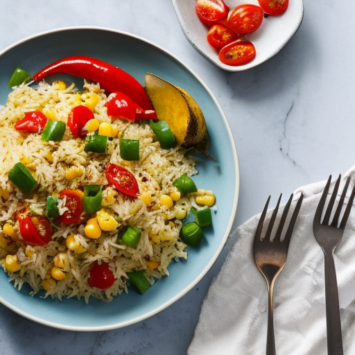 3. 3. Misture tomates picados, milho e arroz basmati.