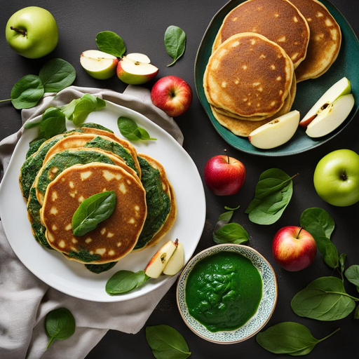 Deliciosas e fofas panquecas de espinafre cobertas com uma compota doce de maçã