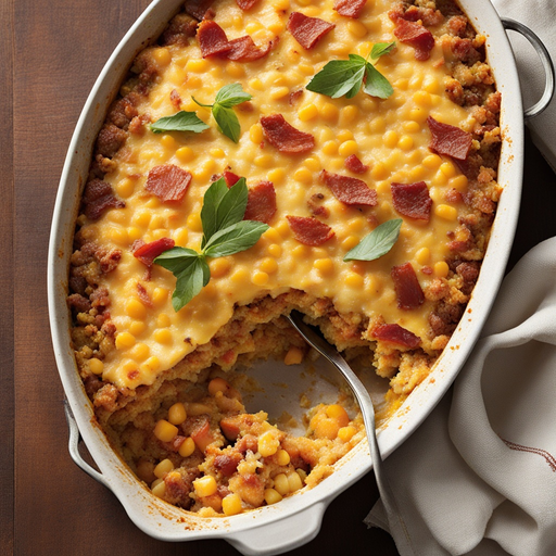 Um prato reconfortante carregado de carne moída, milho e purê de batatas cremoso, coberto com uma crosta de queijo parmesão.