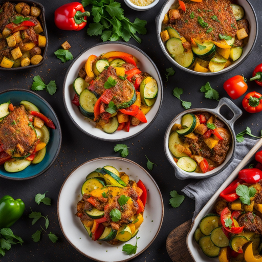 2. Em um refratário grande, faça camadas de batatas, pimentões, cebolas e abobrinhas fatiadas.