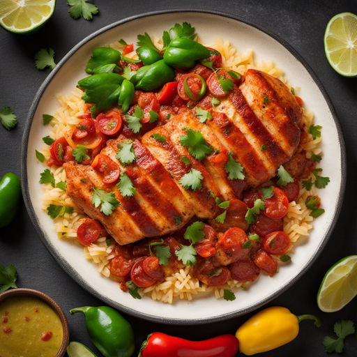 Um prato saboroso e picante com peitos de frango macios, salsa zesty, linguiça andouille e jalapeño para dar um toque extra.